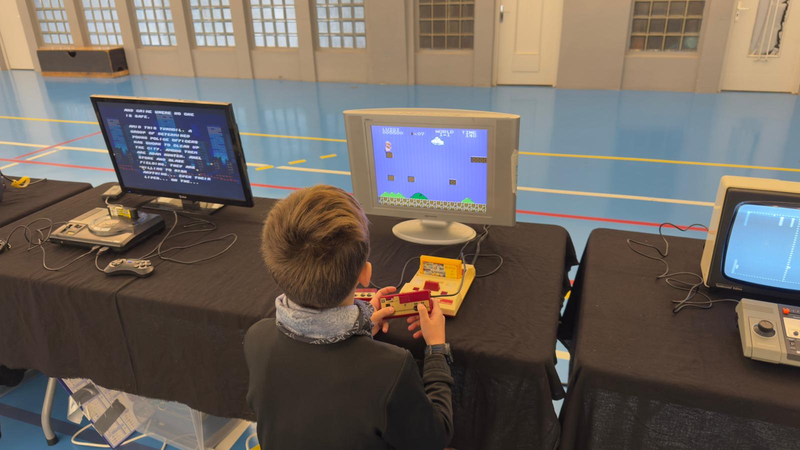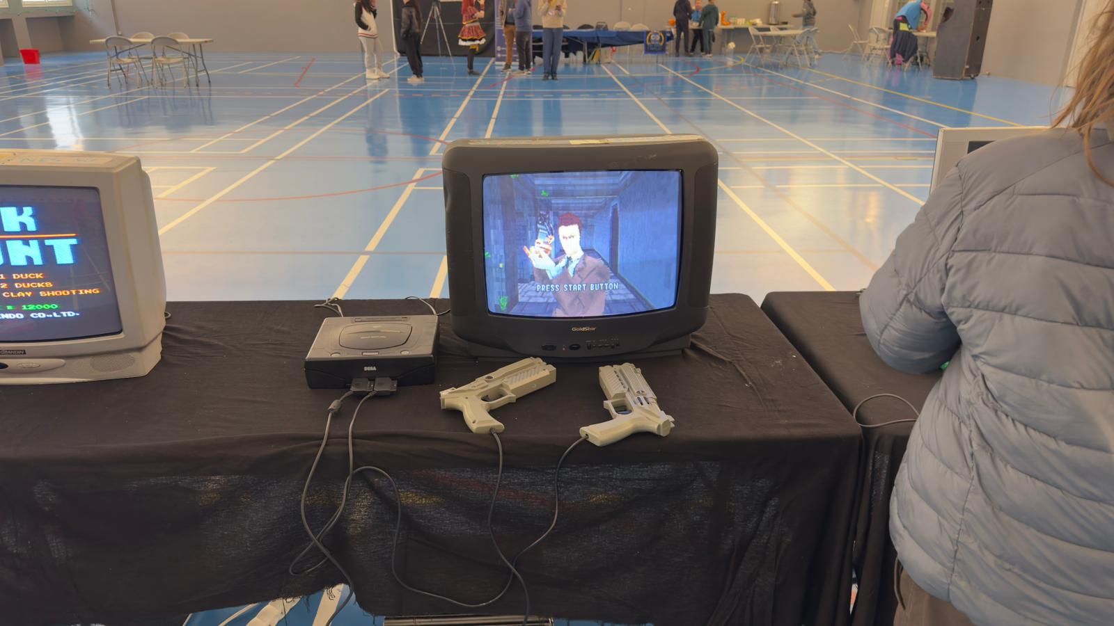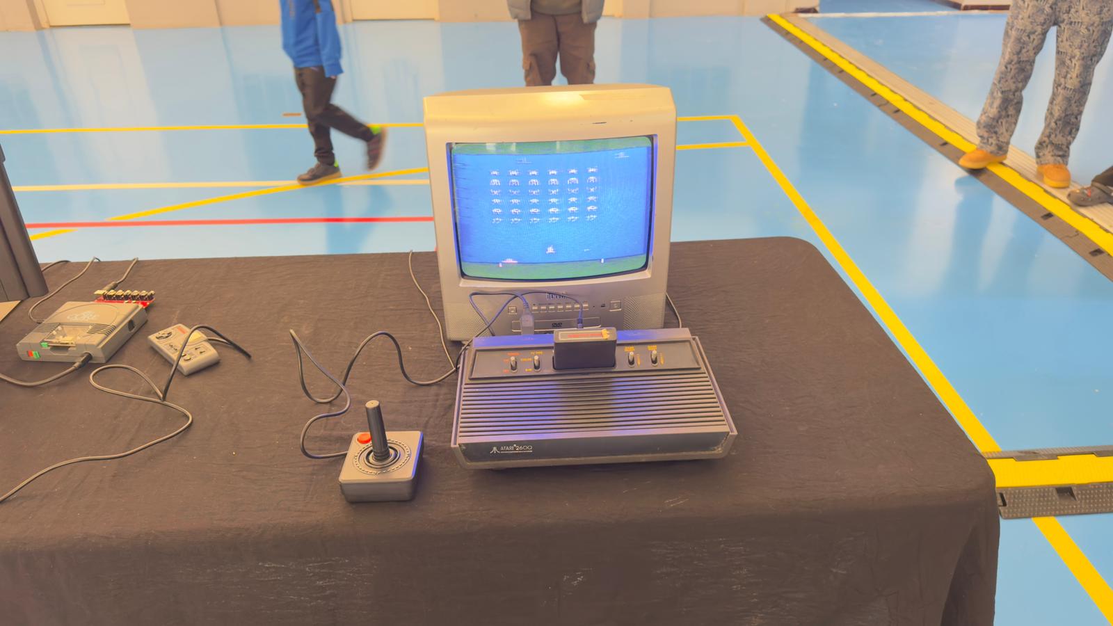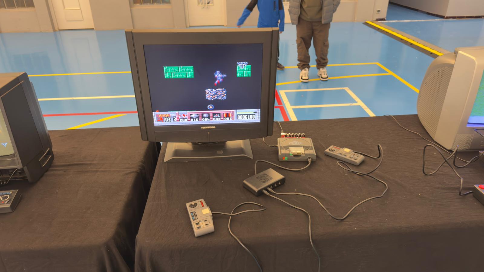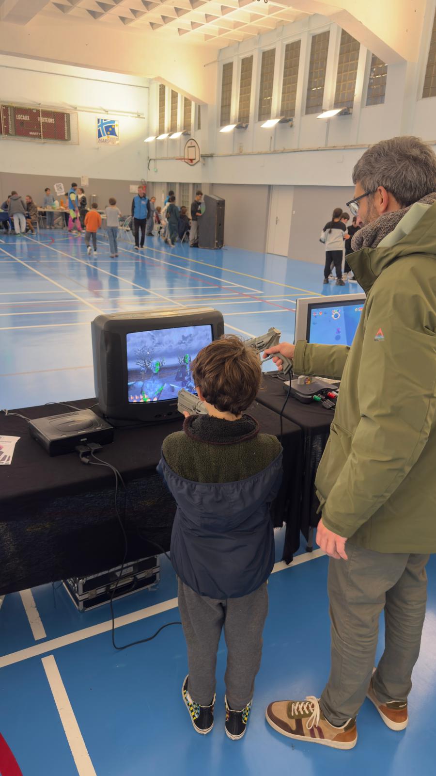 Après avoir contourné quelques difficultés d’alimentation électrique (parce qu’il faut bien quelques tracas quand tout devrait rouler) nous avons pu installer 28 mètres linéaires de consoles old-school, 4 bornes d’arcade et deux surfaces de VR rétro (oui, on peut jouer à des jeux rétros revisités pour le Meta Quest).