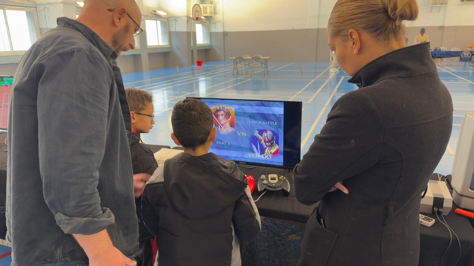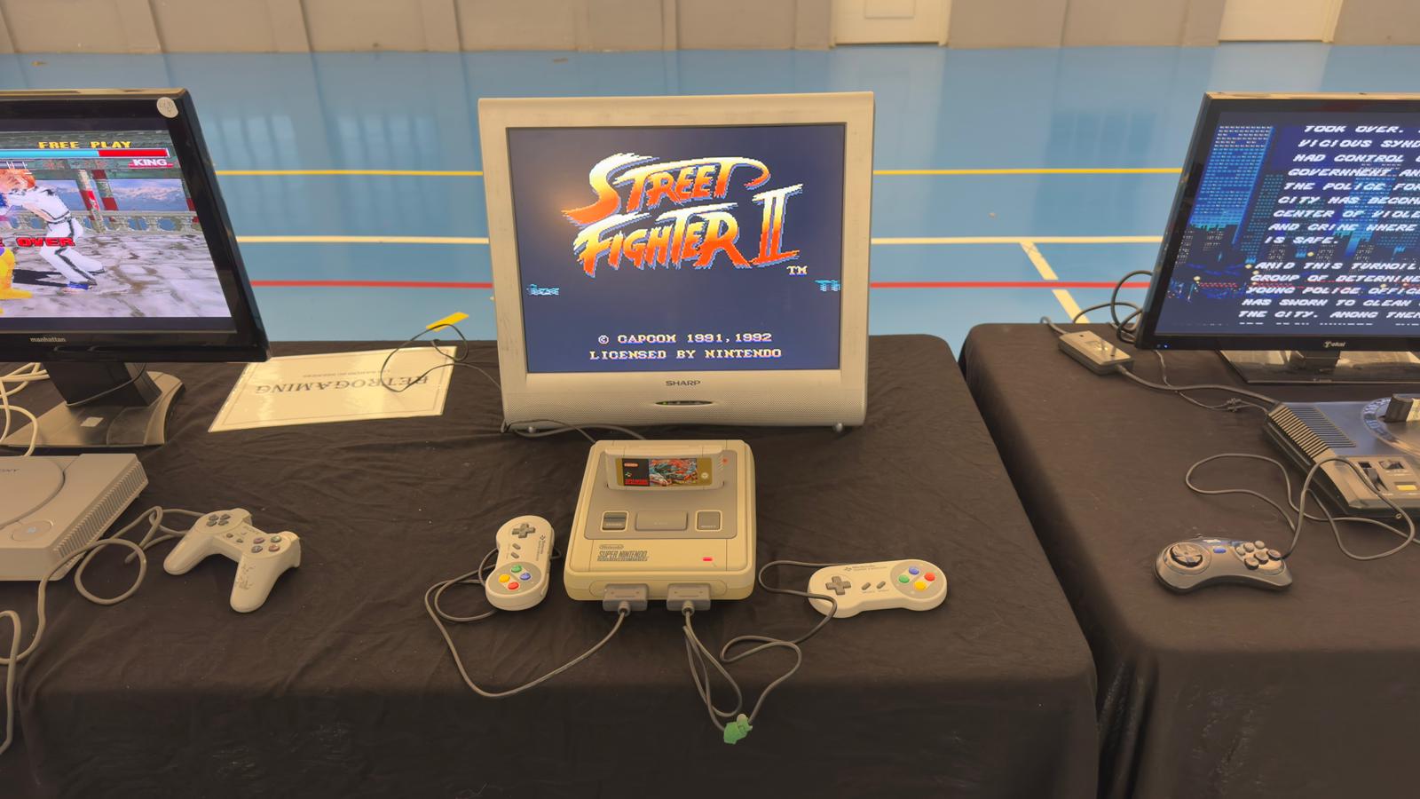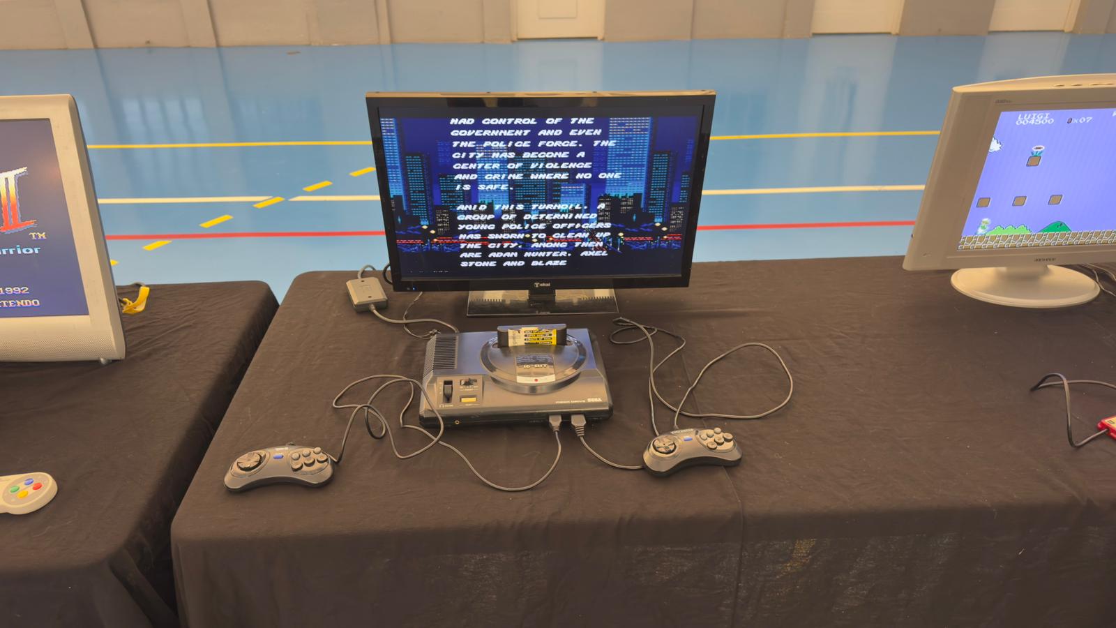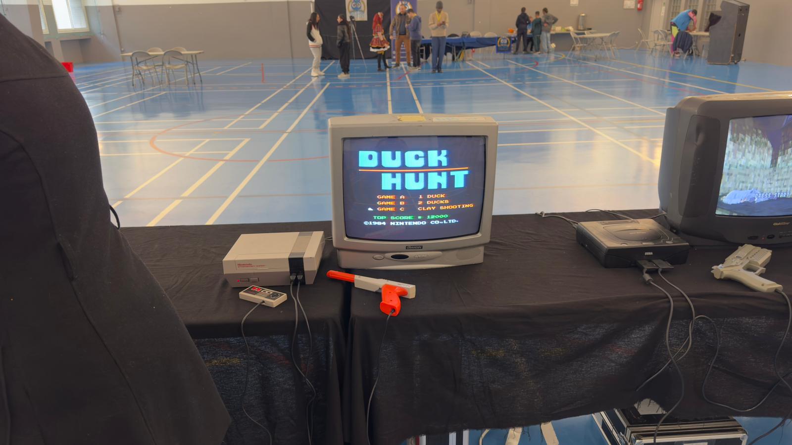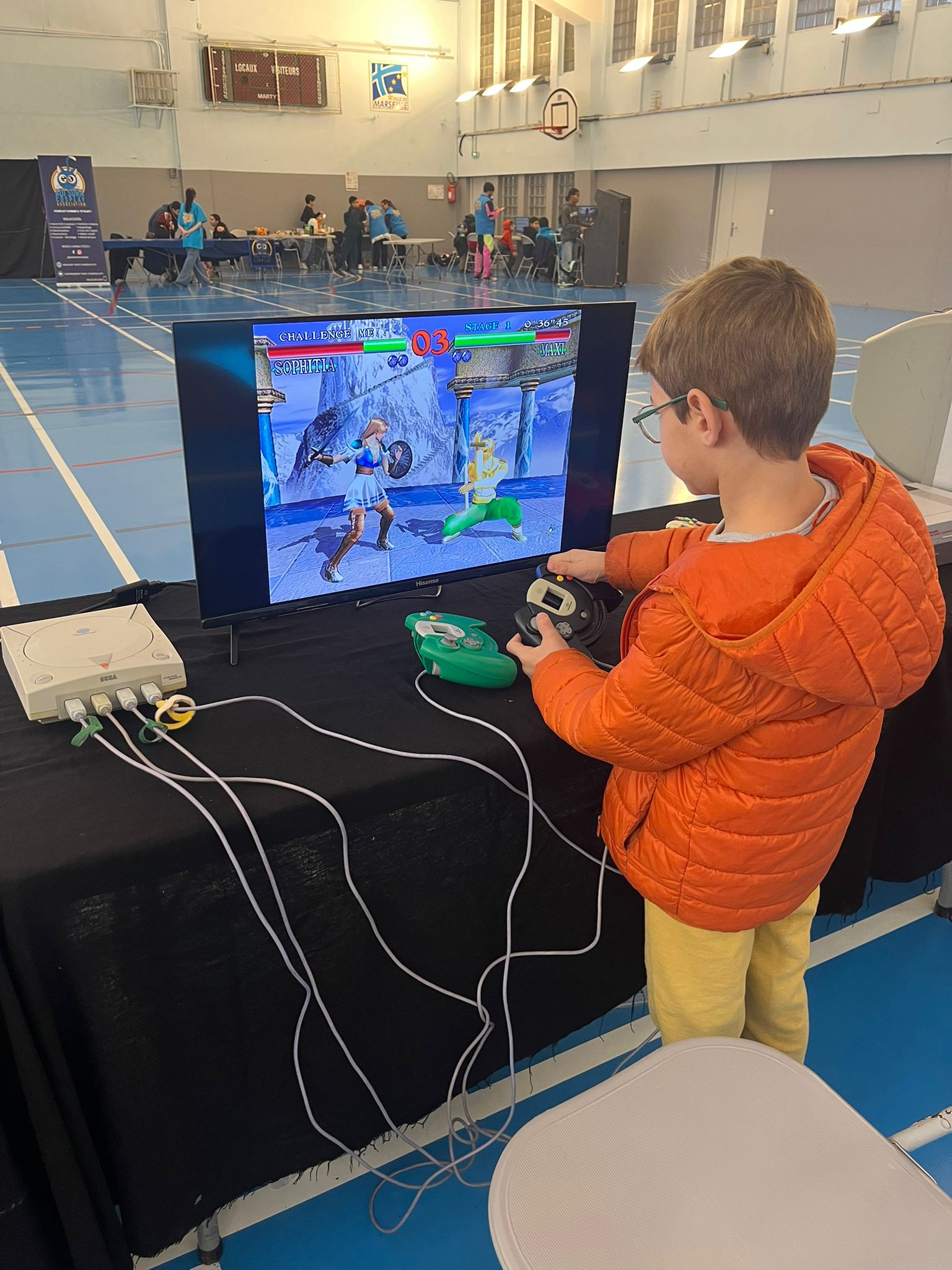 Après avoir contourné quelques difficultés d’alimentation électrique (parce qu’il faut bien quelques tracas quand tout devrait rouler) nous avons pu installer 28 mètres linéaires de consoles old-school, 4 bornes d’arcade et deux surfaces de VR rétro (oui, on peut jouer à des jeux rétros revisités pour le Meta Quest).