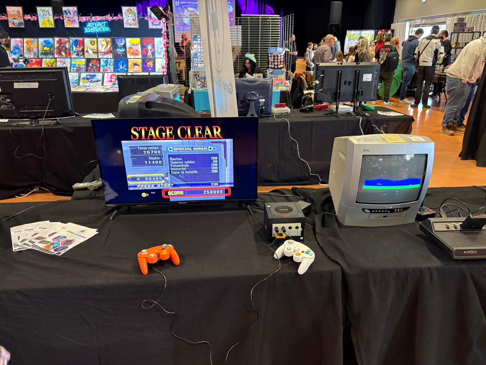 Aubin des Bois et Monsieur Seb ont finalisé un stand où 16 machines old-school étaient présentées pour le plaisir de tous.
