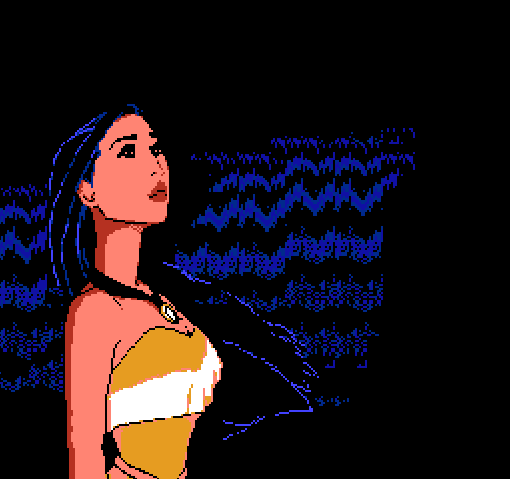 L’animation et le scrolling sont saccadés, les couleurs pitoyables, les sprites minimalistes et Pocahontas si mince et féline est devenue un boudin à miches surdimensionnées qui marche en travers.