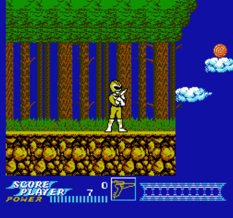 Notre jolie Ranger Jaune (avec la grosse paire de burnes de la V.O.) avance pistolet en main pour récupérer des disques qui lui servent à … quelquechose… quand on en a 10.