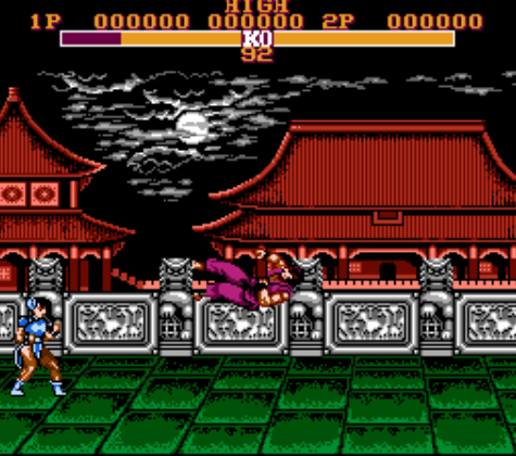 … OK, alors là on rentre dans la longue succession de portages, clones et reclones de SF2. Celui-là propose une bonne vitesse de jeu avec des combattants un peu petits. Il est certain qu’avec seulement deux boutons le gameplay de SF2 est un rien abimé.