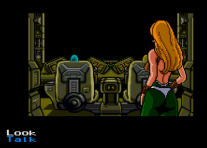 La nuit arrive, vous trouvez Jane dans le lit de votre cabine de vaisseau; quelques temps auparavant elle prenait une douche interminable… j’avoue avoir eu du mal à ressentir une quelconque excitation face à son corps nu pixelisé (NDLR: à la date du jeu ça aurait franchement marché sur les puceaux que nous étions), la faute à la musique répétitive et à la lenteur de l’action. Il aurait suffi de m’attacher sur un fauteuil pour que ce jeu vire à la torture psychologique… Je n’ai pas réagi à la vue de Jane dans la douche, ça fait 30 minutes que je joue, mauvais signe… Ari Cow, tiens bon! tu es un premier de cordée… Continues à jouer! C’est pour tes frères Geek que tu fais cela, tu t’enfonces dans l’ennui profond de ce jeu qui massacre au passage une des meilleurs licences manga des années 80 mais il faut tenir bon car je dois vous dire ce que j’ai vu et ressenti en jouant plusieurs heures de suite.