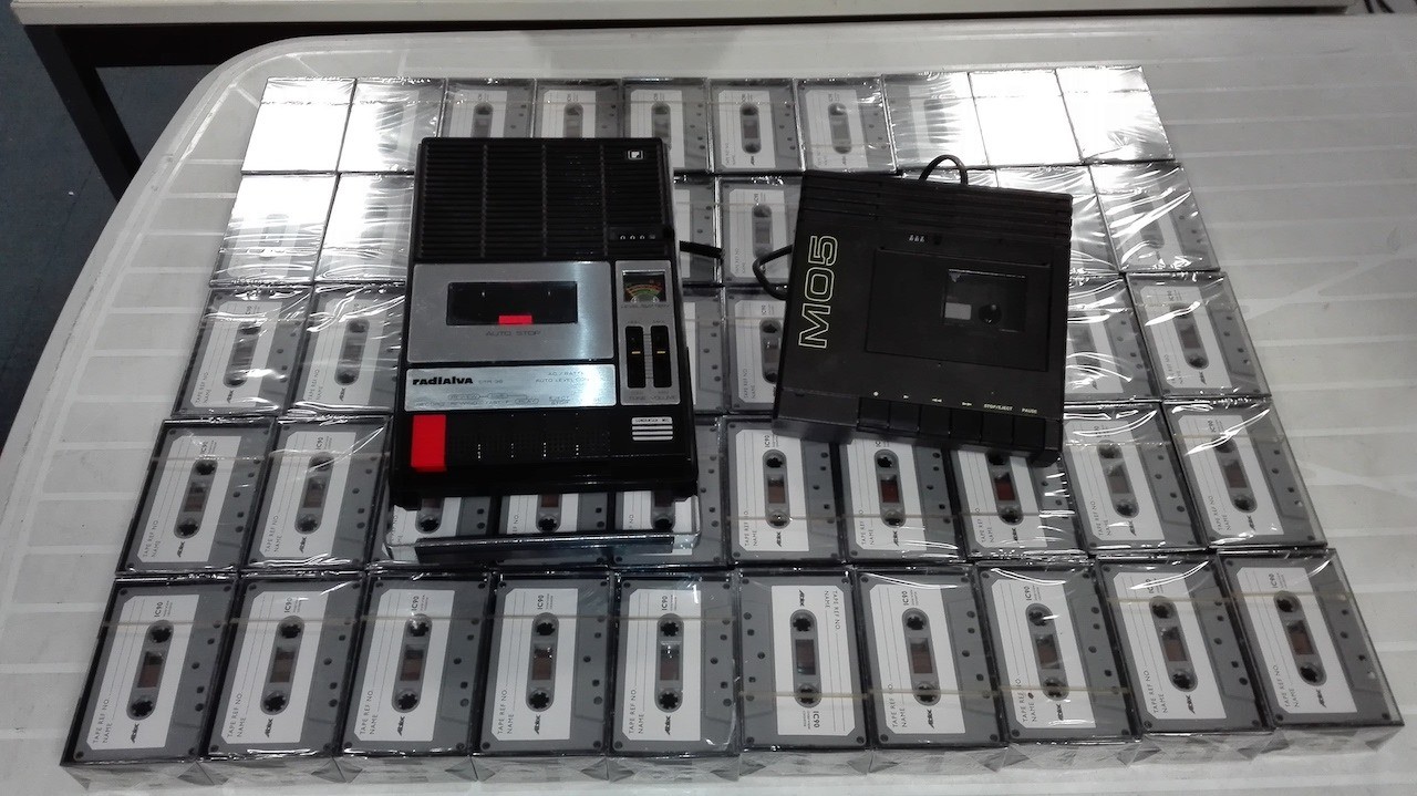 Il s’agit de plusieurs lots de K7 scellées deux par deux, sans doute destinées aux interrogatoires de suspects à l’époque de l’usage courant du magnétophone…