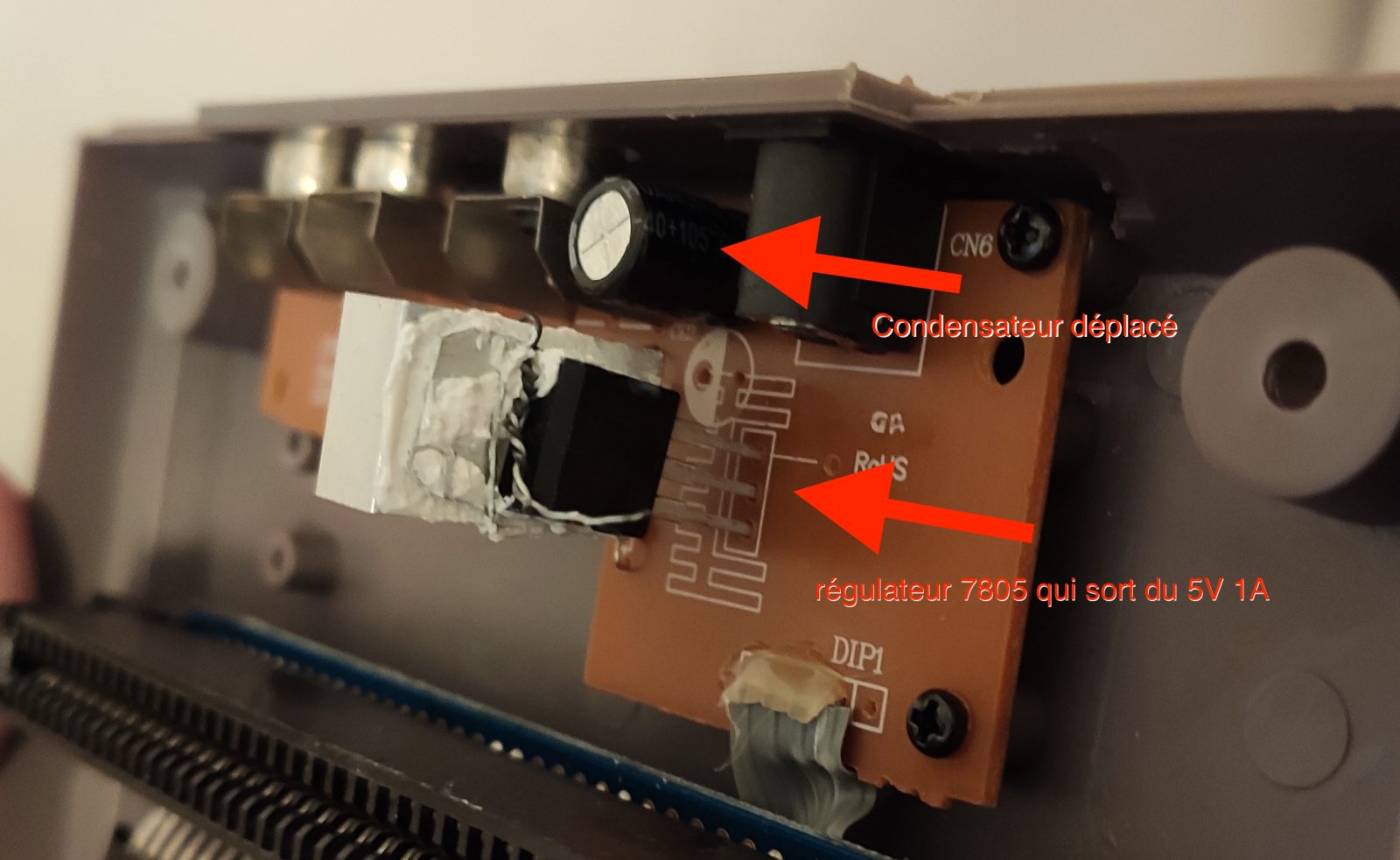 Maintenant, on peut se débarrasser du chargeur 5V 300mA merdique et le remplacer par un 9V 1A comme sur la NES originale.